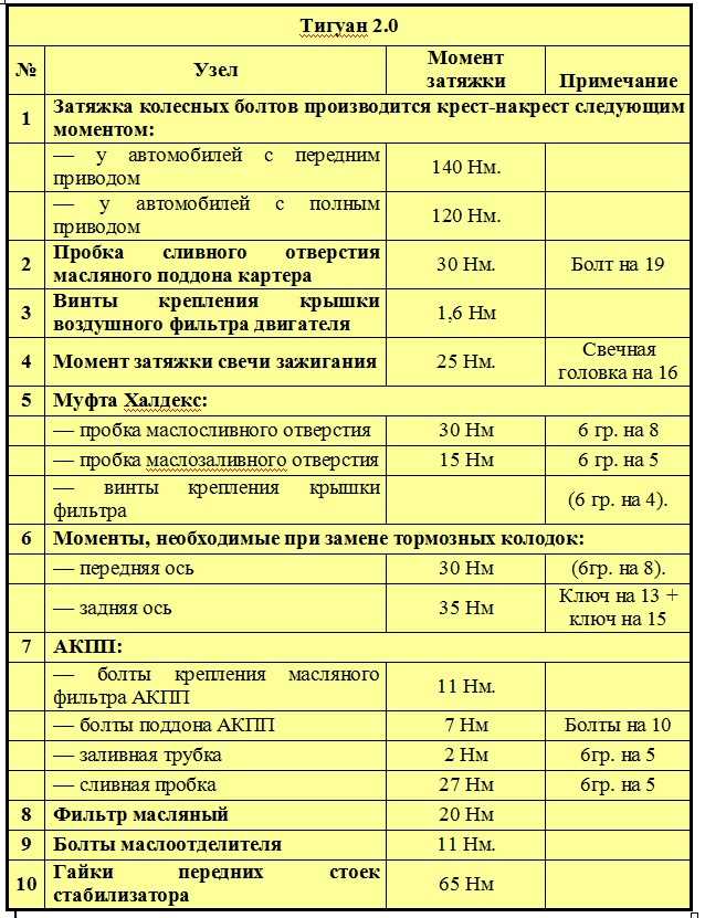 Не забывайте, что правильный момент затяжки является основой для безопасного и надежного использования автомобиля. Регулярно проверяйте состояние болтов и следуйте рекомендациям производителя по установке момента затяжки, чтобы обеспечить оптимальные условия эксплуатации вашего тигуана.